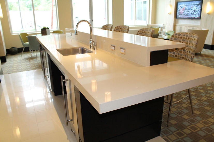Universal Stones imports, fabricates, and installs natural and engineered stone countertops. We service not only the residential market, but also commercial. We specialize in multi-family kitchen countertop projects with a capacity of completing over 4000 kitchens a year. Standard features include: Installed double under mount sink selected by customer, pre-drilled faucet holes, and matching 4" back splash. Custom cuts, sizes, and edging are available by quote.